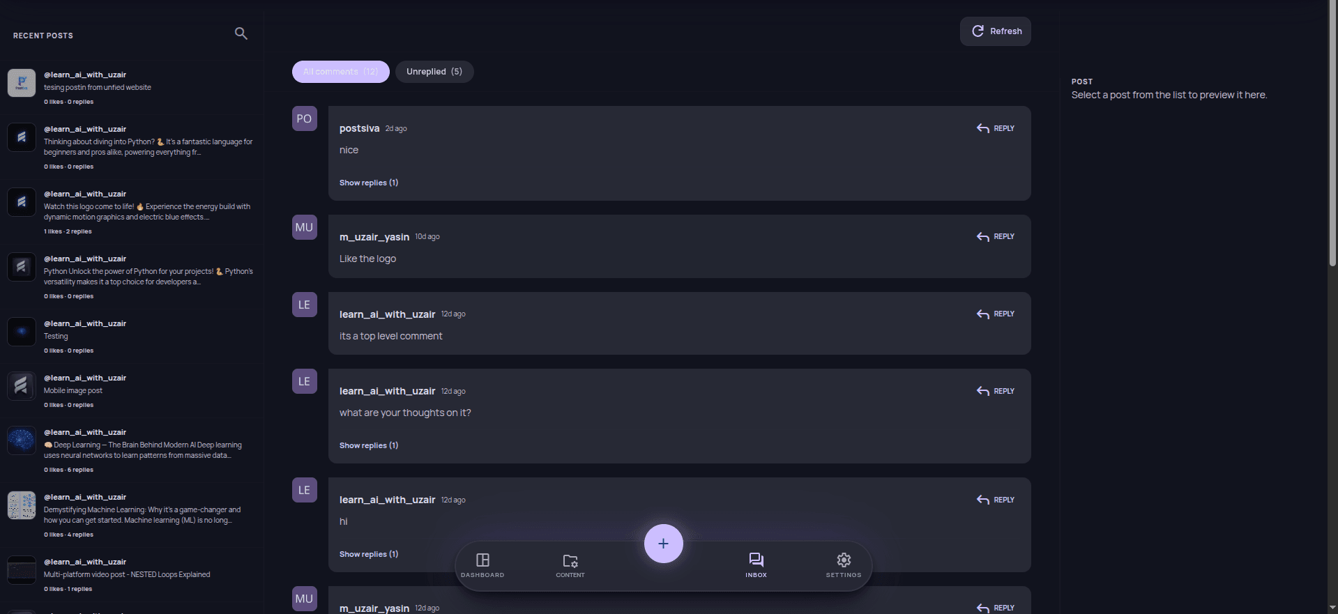 Stitch-sharp mobileApp: dashboard, publish flows, and settings that feel native — not a shrunken browser.